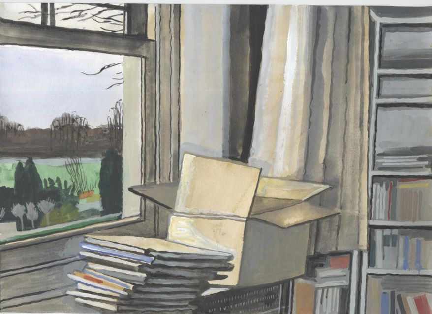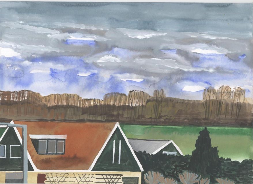 Sinds 1999 schilder ik elke dag, indien aanwezig, het uitzicht uit mijn atelierraam. Formaat (A4), techniek (gouache), tijd (17.00 uur), plaats in het atelier en kijkrichting liggen vast. Soms is ook de vensterbank te zien met de dingen die zich daar op hebben verzameld. OVER HET BOEK 'MIJN UITZICHT OM 17.00 UUR': ZIE 'Boeken' Every day, if present, I paint the view from my studio window. Size (A4), technique (watercolour), time (5 p.m.), position in the studio and the direction in which I look are fixed. Sometimes the windowsill can be seen with the different objects which have gathered there through time. ABOUT THE BOOK 'MY VIEW AT 5 P.M.' (WITH ENGLISH TEXT): SEE 'Books'