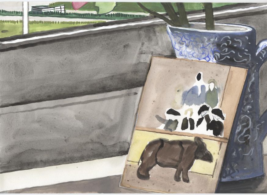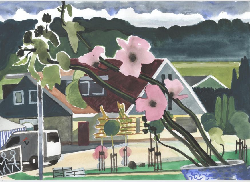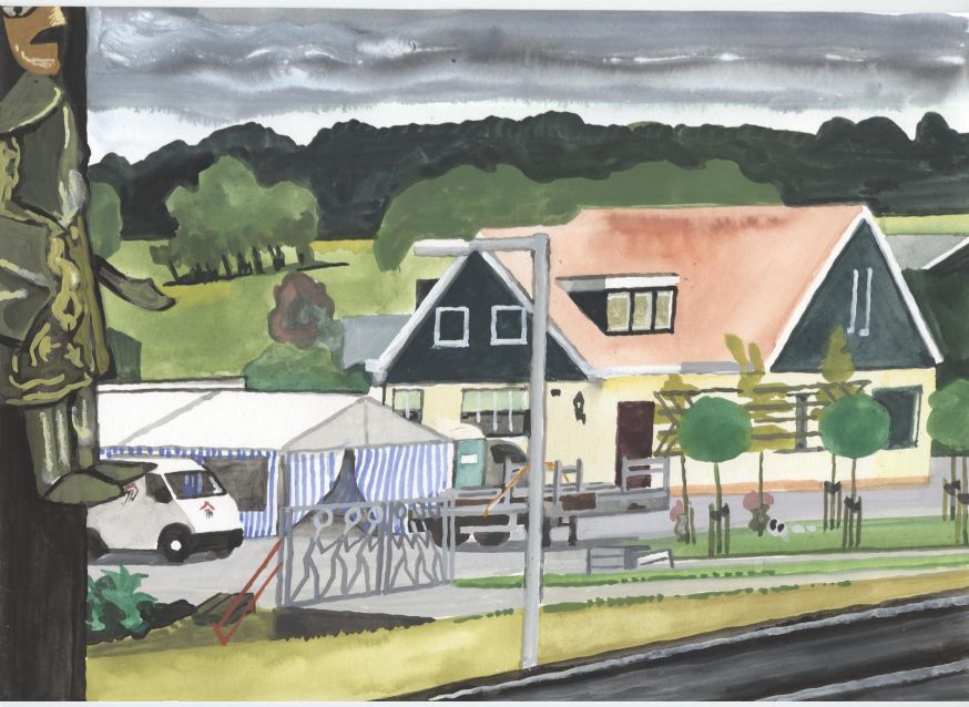 Sinds 1999 schilder ik elke dag, indien aanwezig, het uitzicht uit mijn atelierraam. Formaat (A4), techniek (gouache), tijd (17.00 uur), plaats in het atelier en kijkrichting liggen vast. Soms is ook de vensterbank te zien met de dingen die zich daar op hebben verzameld. OVER HET BOEK 'MIJN UITZICHT OM 17.00 UUR': ZIE 'Boeken' Every day, if present, I paint the view from my studio window. Size (A4), technique (watercolour), time (5 p.m.), position in the studio and the direction in which I look are fixed. Sometimes the windowsill can be seen with the different objects which have gathered there through time. ABOUT THE BOOK 'MY VIEW AT 5 P.M.' (WITH ENGLISH TEXT): SEE 'Books'