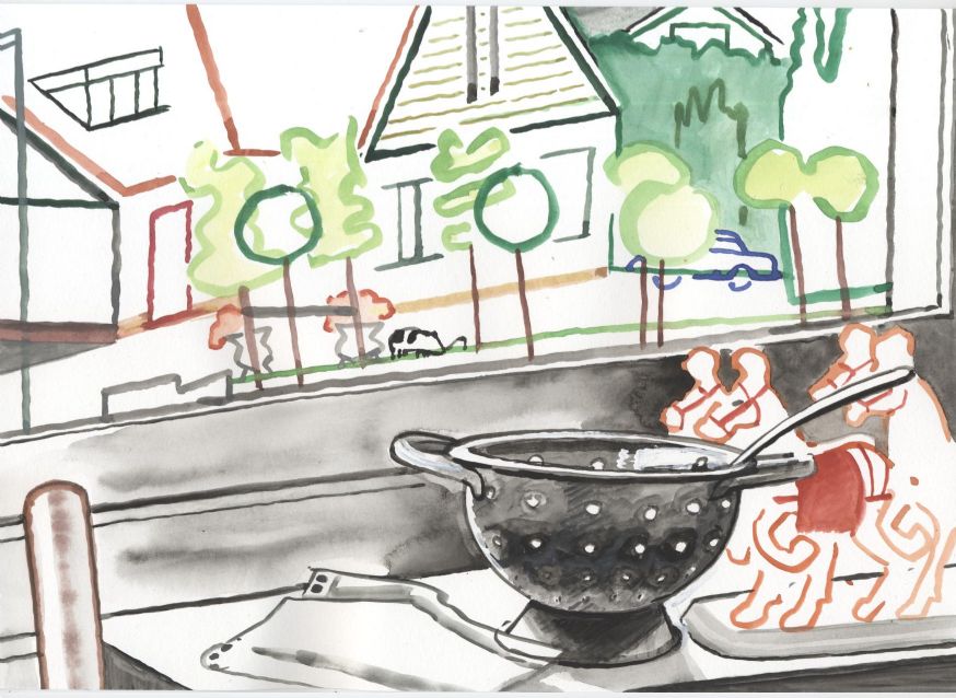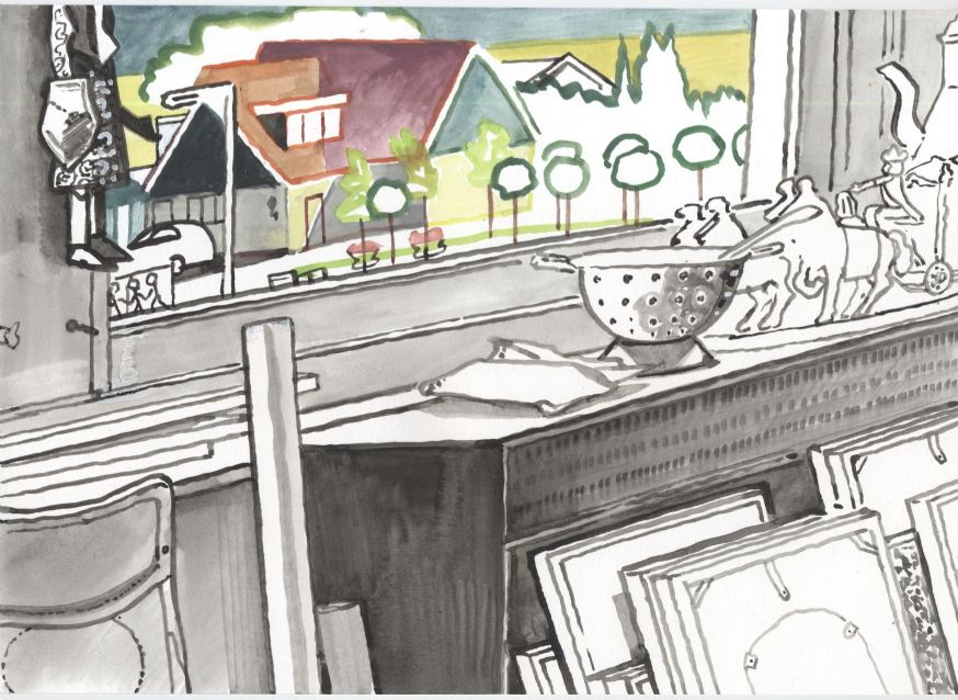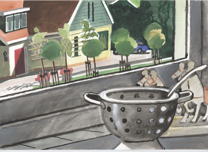 Sinds 1999 schilder ik elke dag, indien aanwezig, het uitzicht uit mijn atelierraam. Formaat (A4), techniek (gouache), tijd (17.00 uur), plaats in het atelier en kijkrichting liggen vast. Soms is ook de vensterbank te zien met de dingen die zich daar op hebben verzameld. OVER HET BOEK 'MIJN UITZICHT OM 17.00 UUR': ZIE 'Boeken' Every day, if present, I paint the view from my studio window. Size (A4), technique (watercolour), time (5 p.m.), position in the studio and the direction in which I look are fixed. Sometimes the windowsill can be seen with the different objects which have gathered there through time. ABOUT THE BOOK 'MY VIEW AT 5 P.M.' (WITH ENGLISH TEXT): SEE 'Books'