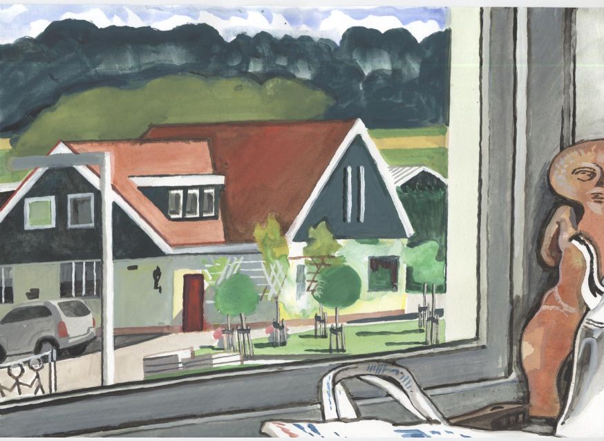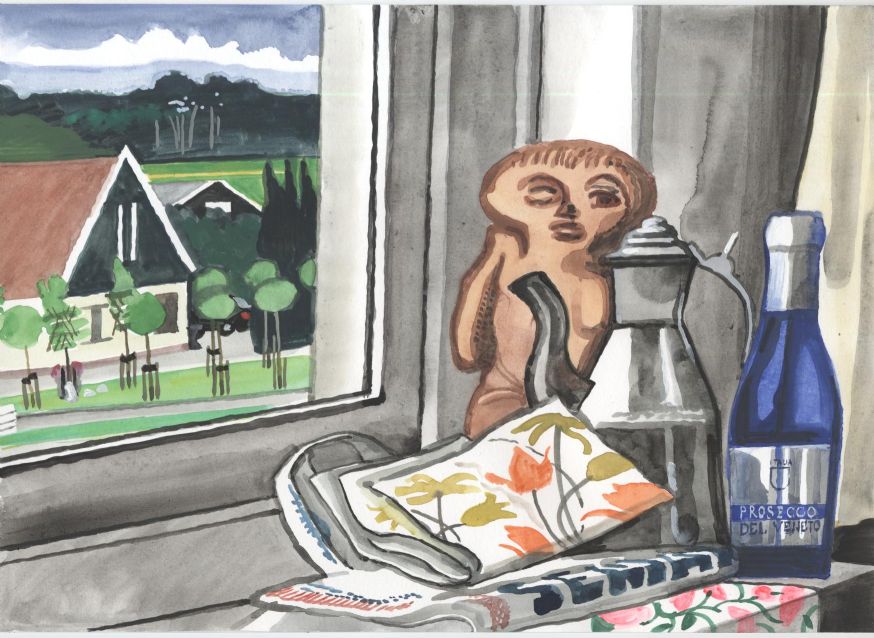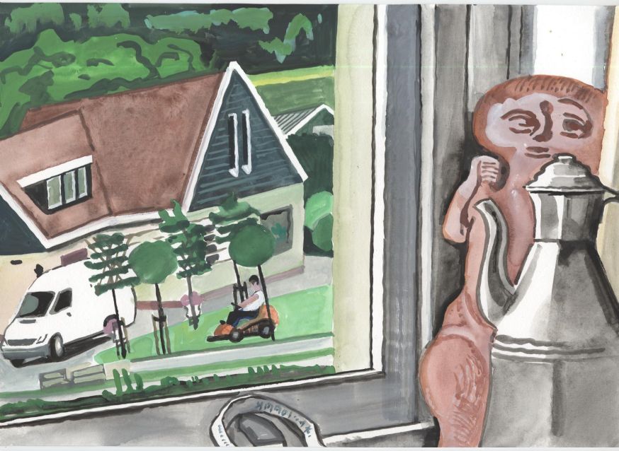 Sinds 1999 schilder ik elke dag, indien aanwezig, het uitzicht uit mijn atelierraam. Formaat (A4), techniek (gouache), tijd (17.00 uur), plaats in het atelier en kijkrichting liggen vast. Soms is ook de vensterbank te zien met de dingen die zich daar op hebben verzameld. OVER HET BOEK 'MIJN UITZICHT OM 17.00 UUR': ZIE 'Boeken' Every day, if present, I paint the view from my studio window. Size (A4), technique (watercolour), time (5 p.m.), position in the studio and the direction in which I look are fixed. Sometimes the windowsill can be seen with the different objects which have gathered there through time. ABOUT THE BOOK 'MY VIEW AT 5 P.M.' (WITH ENGLISH TEXT): SEE 'Books'