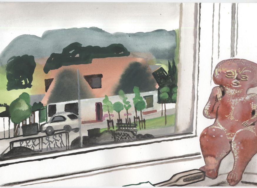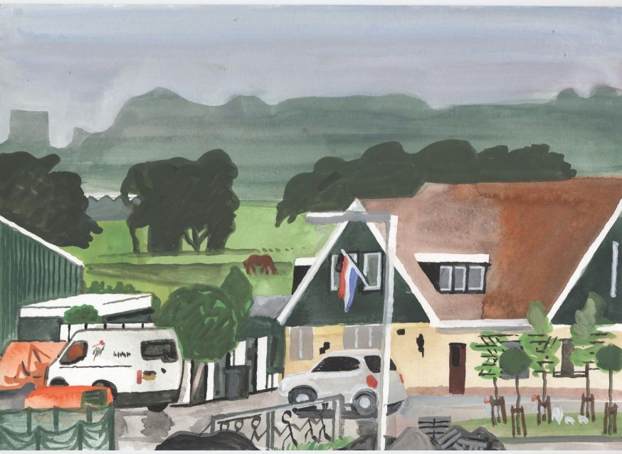 Sinds 1999 schilder ik elke dag, indien aanwezig, het uitzicht uit mijn atelierraam. Formaat (A4), techniek (gouache), tijd (17.00 uur), plaats in het atelier en kijkrichting liggen vast. Soms is ook de vensterbank te zien met de dingen die zich daar op hebben verzameld. OVER HET BOEK 'MIJN UITZICHT OM 17.00 UUR': ZIE 'Boeken' Every day, if present, I paint the view from my studio window. Size (A4), technique (watercolour), time (5 p.m.), position in the studio and the direction in which I look are fixed. Sometimes the windowsill can be seen with the different objects which have gathered there through time. ABOUT THE BOOK 'MY VIEW AT 5 P.M.' (WITH ENGLISH TEXT): SEE 'Books'