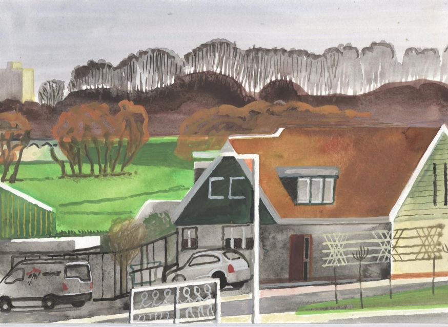 Sinds 1999 schilder ik elke dag, indien aanwezig, het uitzicht uit mijn atelierraam. Formaat (A4), techniek (gouache), tijd (17.00 uur), plaats in het atelier en kijkrichting liggen vast. Soms is ook de vensterbank te zien met de dingen die zich daar op hebben verzameld. OVER HET BOEK 'MIJN UITZICHT OM 17.00 UUR': ZIE 'Boeken' Every day, if present, I paint the view from my studio window. Size (A4), technique (watercolour), time (5 p.m.), position in the studio and the direction in which I look are fixed. Sometimes the windowsill can be seen with the different objects which have gathered there through time. ABOUT THE BOOK 'MY VIEW AT 5 P.M.' (WITH ENGLISH TEXT): SEE 'Books'