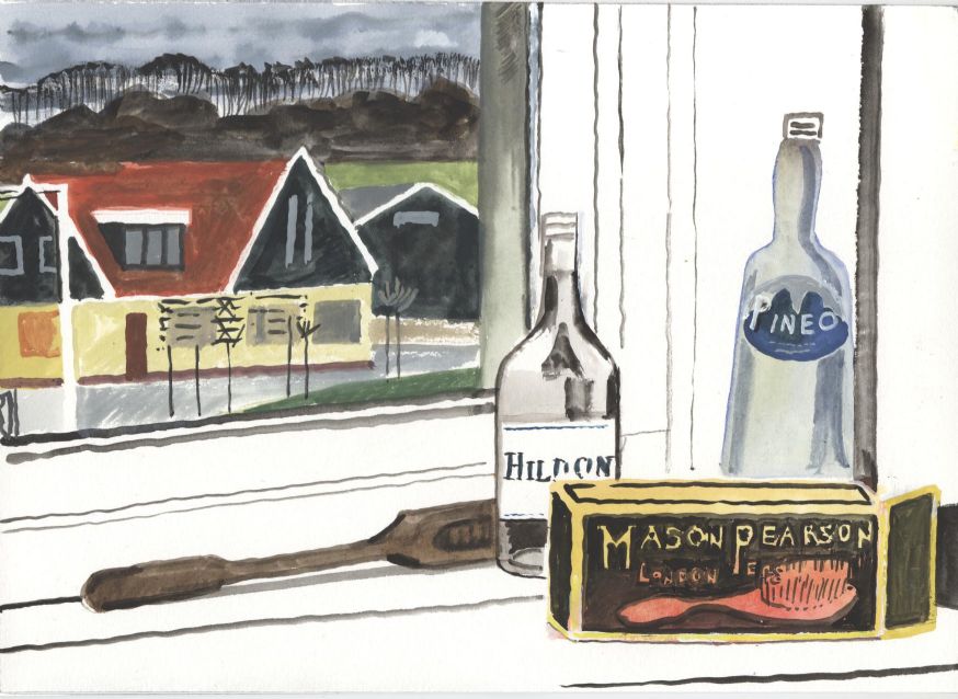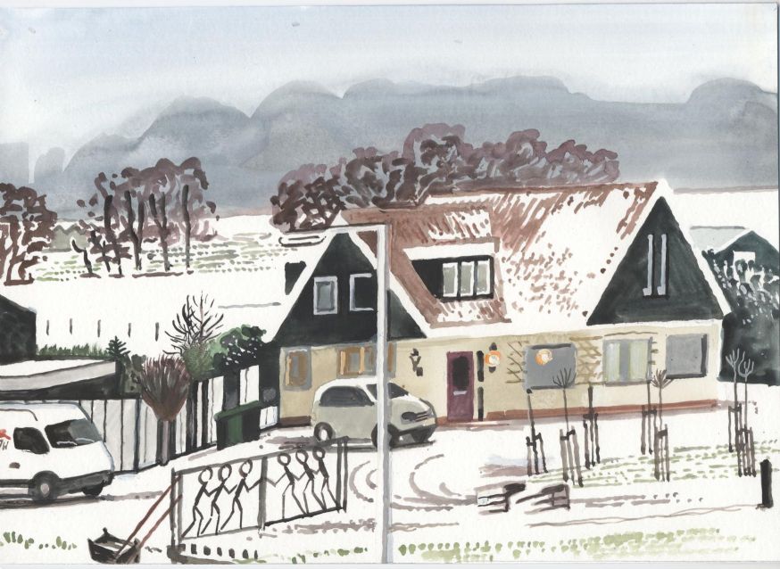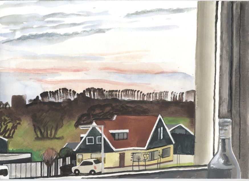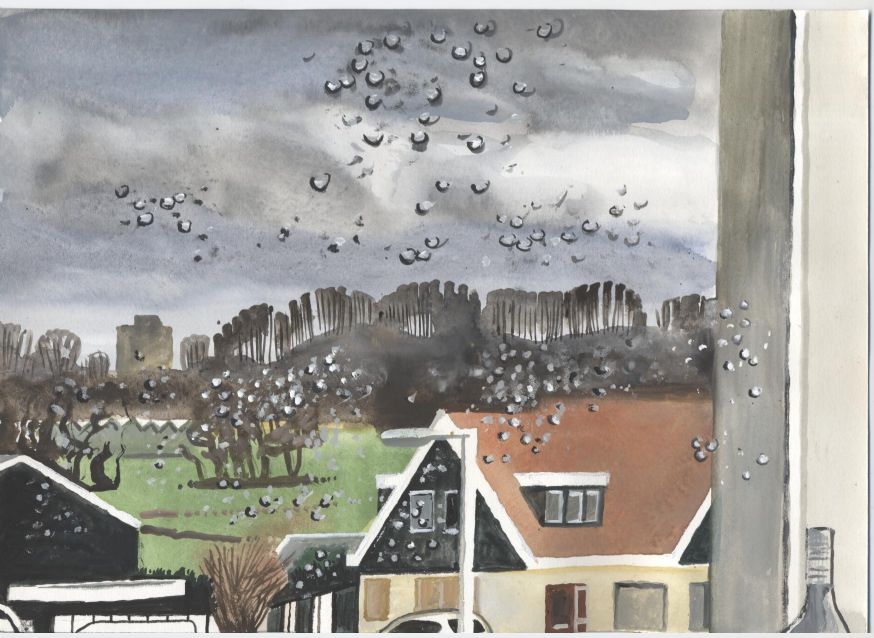 Sinds 1999 schilder ik elke dag, indien aanwezig, het uitzicht uit mijn atelierraam. Formaat (A4), techniek (gouache), tijd (17.00 uur), plaats in het atelier en kijkrichting liggen vast. Soms is ook de vensterbank te zien met de dingen die zich daar op hebben verzameld. OVER HET BOEK 'MIJN UITZICHT OM 17.00 UUR': ZIE 'Boeken' Every day, if present, I paint the view from my studio window. Size (A4), technique (watercolour), time (5 p.m.), position in the studio and the direction in which I look are fixed. Sometimes the windowsill can be seen with the different objects which have gathered there through time. ABOUT THE BOOK 'MY VIEW AT 5 P.M.' (WITH ENGLISH TEXT): SEE 'Books'