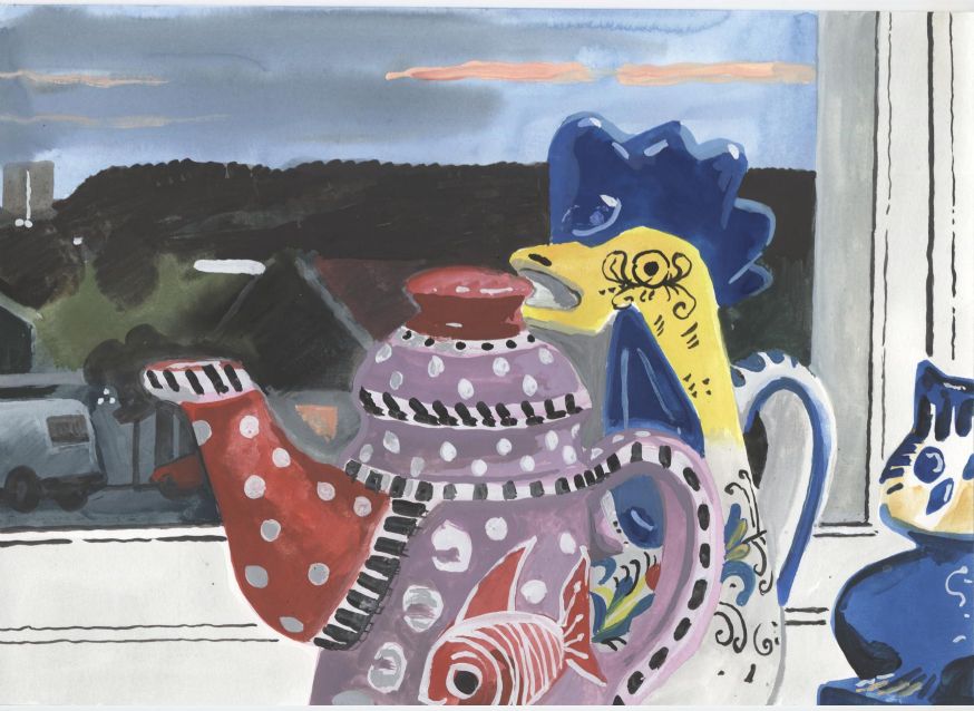 Sinds 1999 schilder ik elke dag, indien aanwezig, het uitzicht uit mijn atelierraam. Formaat (A4), techniek (gouache), tijd (17.00 uur), plaats in het atelier en kijkrichting liggen vast. Soms is ook de vensterbank te zien met de dingen die zich daar op hebben verzameld. OVER HET BOEK 'MIJN UITZICHT OM 17.00 UUR': ZIE 'Boeken' Every day, if present, I paint the view from my studio window. Size (A4), technique (watercolour), time (5 p.m.), position in the studio and the direction in which I look are fixed. Sometimes the windowsill can be seen with the different objects which have gathered there through time. ABOUT THE BOOK 'MY VIEW AT 5 P.M.' (WITH ENGLISH TEXT): SEE 'Books'