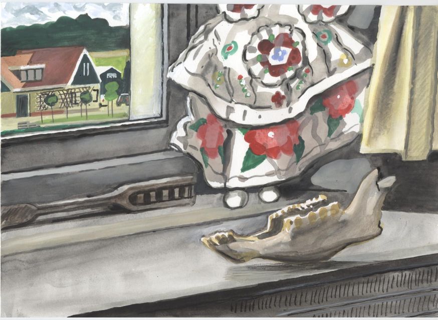 Sinds 1999 schilder ik elke dag, indien aanwezig, het uitzicht uit mijn atelierraam. Formaat (A4), techniek (gouache), tijd (17.00 uur), plaats in het atelier en kijkrichting liggen vast. Soms is ook de vensterbank te zien met de dingen die zich daar op hebben verzameld. OVER HET BOEK 'MIJN UITZICHT OM 17.00 UUR': ZIE 'Boeken' Every day, if present, I paint the view from my studio window. Size (A4), technique (watercolour), time (5 p.m.), position in the studio and the direction in which I look are fixed. Sometimes the windowsill can be seen with the different objects which have gathered there through time. ABOUT THE BOOK 'MY VIEW AT 5 P.M.' (WITH ENGLISH TEXT): SEE 'Books'