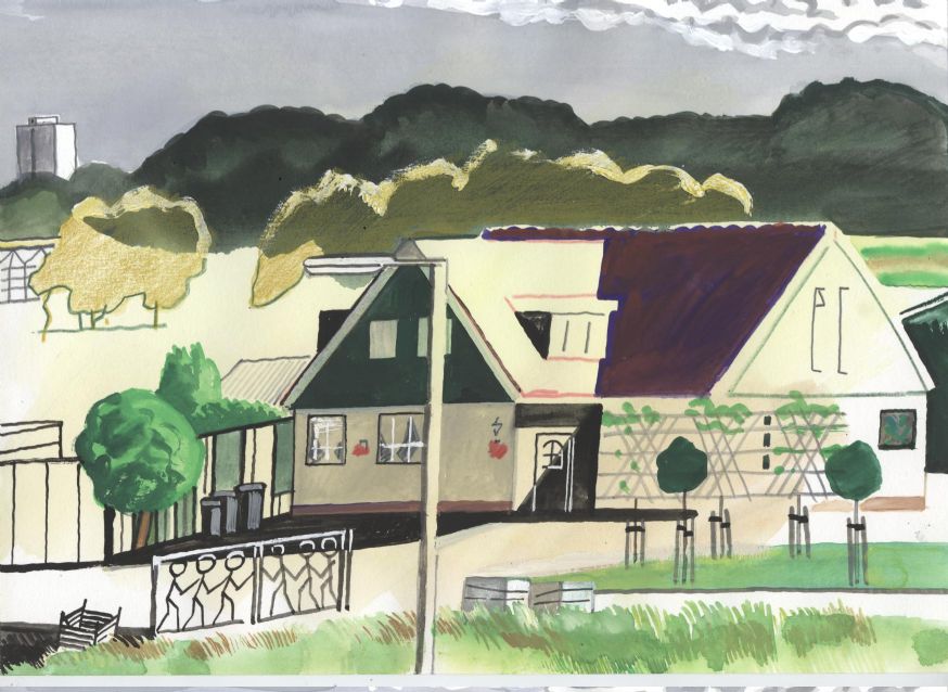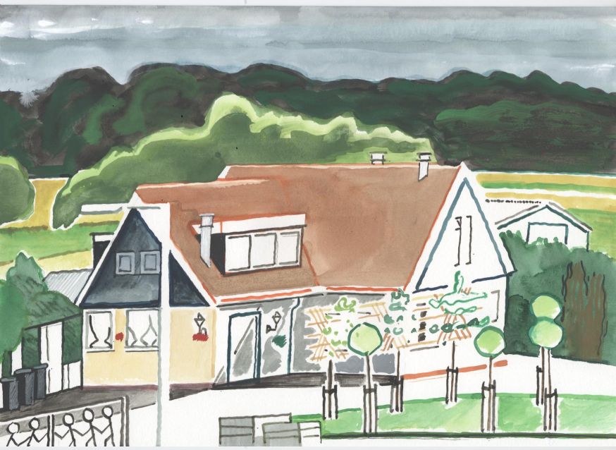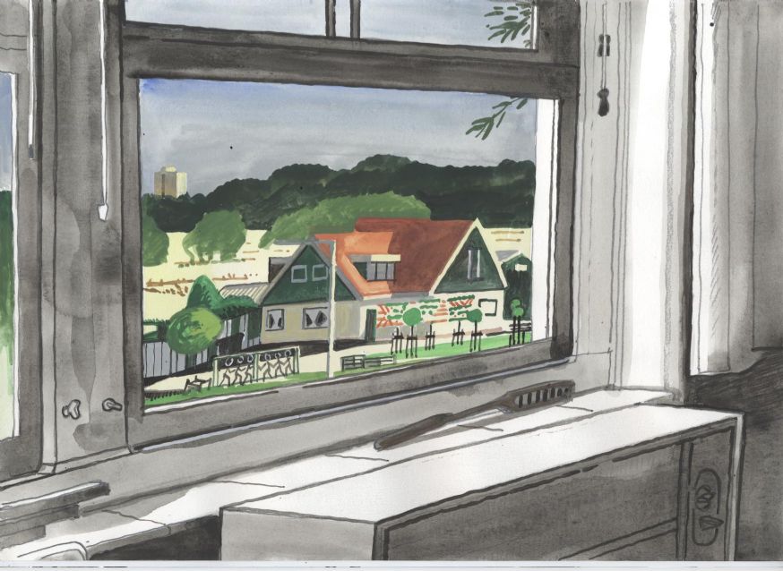 Sinds 1999 schilder ik elke dag, indien aanwezig, het uitzicht uit mijn atelierraam. Formaat (A4), techniek (gouache), tijd (17.00 uur), plaats in het atelier en kijkrichting liggen vast. Soms is ook de vensterbank te zien met de dingen die zich daar op hebben verzameld. OVER HET BOEK 'MIJN UITZICHT OM 17.00 UUR': ZIE 'Boeken' Every day, if present, I paint the view from my studio window. Size (A4), technique (watercolour), time (5 p.m.), position in the studio and the direction in which I look are fixed. Sometimes the windowsill can be seen with the different objects which have gathered there through time. ABOUT THE BOOK 'MY VIEW AT 5 P.M.' (WITH ENGLISH TEXT): SEE 'Books'