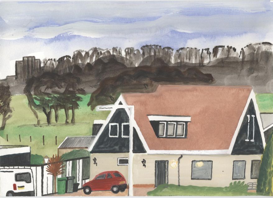 Every day, if present, I paint the view from my studio window. Size (A4), technique (watercolour), time (5 p.m.), position in the studio and the direction in which I look are fixed. Sometimes the windowsill can be seen with the different objects which have gathered there through time. ABOUT THE BOOK 'MY VIEW AT 5 P.M.' (WITH ENGLISH TEXT): SEE 'Books'