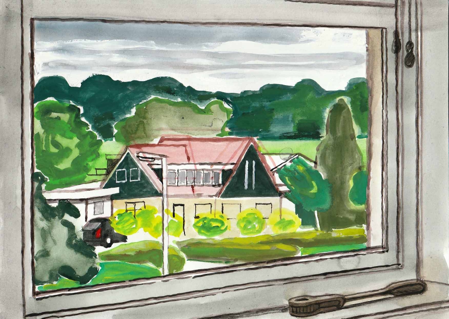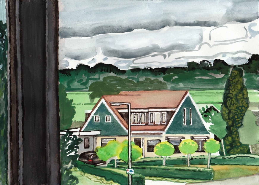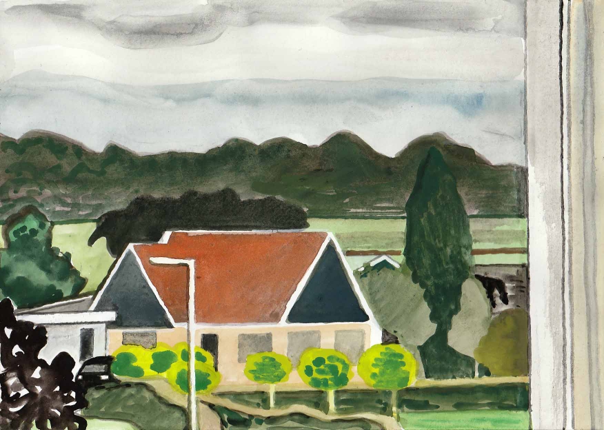 Sinds 1999 schilder ik elke dag, indien aanwezig, het uitzicht uit mijn atelierraam. Formaat (A4), techniek (gouache), tijd (17.00 uur), plaats in het atelier en kijkrichting liggen vast. Soms is ook de vensterbank te zien met de dingen die zich daar op hebben verzameld. OVER HET BOEK 'MIJN UITZICHT OM 17.00 UUR': ZIE 'Boeken' Every day, if present, I paint the view from my studio window. Size (A4), technique (watercolour), time (5 p.m.), position in the studio and the direction in which I look are fixed. Sometimes the windowsill can be seen with the different objects which have gathered there through time. ABOUT THE BOOK 'MY VIEW AT 5 P.M.' (WITH ENGLISH TEXT): SEE 'Books'