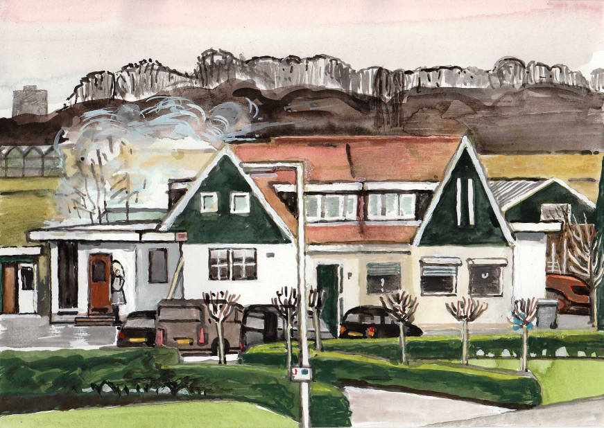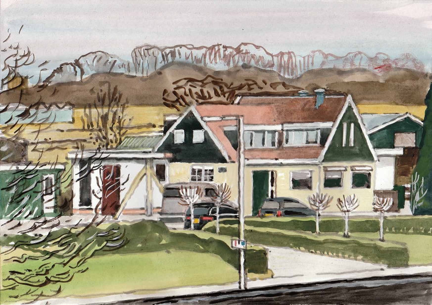 Sinds 1999 schilder ik elke dag, indien aanwezig, het uitzicht uit mijn atelierraam. Formaat (A4), techniek (gouache), tijd (17.00 uur), plaats in het atelier en kijkrichting liggen vast. Soms is ook de vensterbank te zien met de dingen die zich daar op hebben verzameld. OVER HET BOEK 'MIJN UITZICHT OM 17.00 UUR': ZIE 'Boeken' Every day, if present, I paint the view from my studio window. Size (A4), technique (watercolour), time (5 p.m.), position in the studio and the direction in which I look are fixed. Sometimes the windowsill can be seen with the different objects which have gathered there through time. ABOUT THE BOOK 'MY VIEW AT 5 P.M.' (WITH ENGLISH TEXT): SEE 'Books'