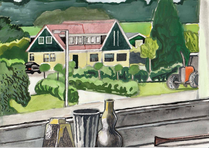 Sinds 1999 schilder ik elke dag, indien aanwezig, het uitzicht uit mijn atelierraam. Formaat (A4), techniek (gouache), tijd (17.00 uur), plaats in het atelier en kijkrichting liggen vast. Soms is ook de vensterbank te zien met de dingen die zich daar op hebben verzameld. OVER HET BOEK 'MIJN UITZICHT OM 17.00 UUR': ZIE 'Boeken' Every day, if present, I paint the view from my studio window. Size (A4), technique (watercolour), time (5 p.m.), position in the studio and the direction in which I look are fixed. Sometimes the windowsill can be seen with the different objects which have gathered there through time. ABOUT THE BOOK 'MY VIEW AT 5 P.M.' (WITH ENGLISH TEXT): SEE 'Books'