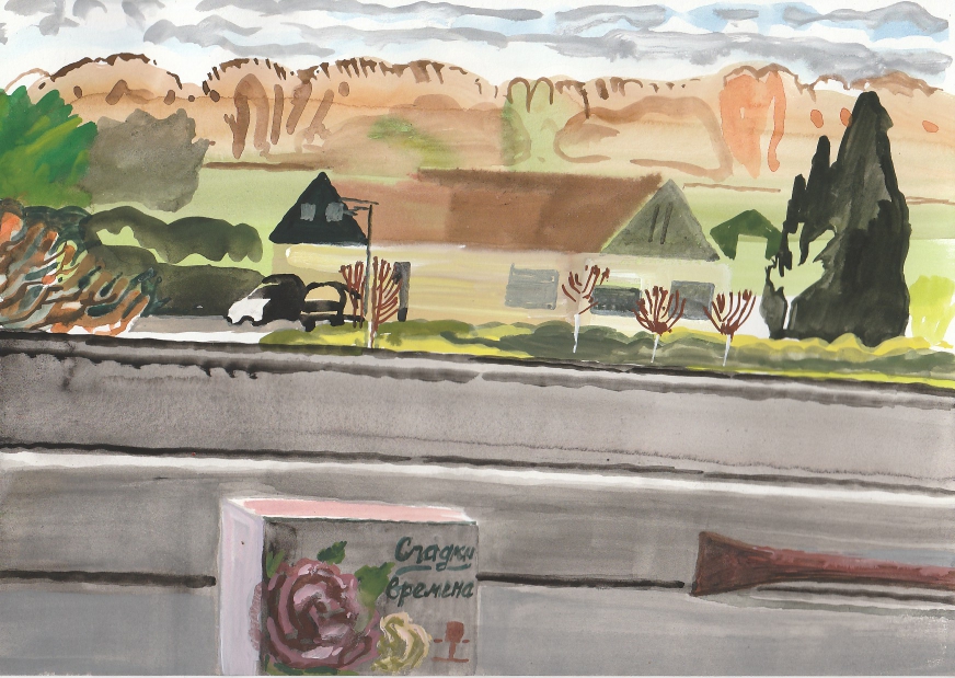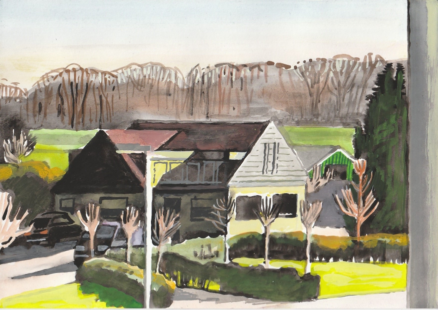 Sinds 1999 schilder ik elke dag, indien aanwezig, het uitzicht uit mijn atelierraam. Formaat (A4), techniek (gouache), tijd (17.00 uur), plaats in het atelier en kijkrichting liggen vast. Soms is ook de vensterbank te zien met de dingen die zich daar op hebben verzameld. OVER HET BOEK 'MIJN UITZICHT OM 17.00 UUR': ZIE 'Boeken' Every day, if present, I paint the view from my studio window. Size (A4), technique (watercolour), time (5 p.m.), position in the studio and the direction in which I look are fixed. Sometimes the windowsill can be seen with the different objects which have gathered there through time. ABOUT THE BOOK 'MY VIEW AT 5 P.M.' (WITH ENGLISH TEXT): SEE 'Books'