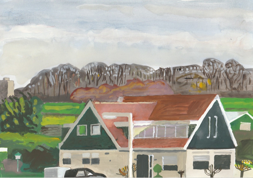 Sinds 1999 schilder ik elke dag, indien aanwezig, het uitzicht uit mijn atelierraam. Formaat (A4), techniek (gouache), tijd (17.00 uur), plaats in het atelier en kijkrichting liggen vast. Soms is ook de vensterbank te zien met de dingen die zich daar op hebben verzameld. OVER HET BOEK 'MIJN UITZICHT OM 17.00 UUR': ZIE 'Boeken' Every day, if present, I paint the view from my studio window. Size (A4), technique (watercolour), time (5 p.m.), position in the studio and the direction in which I look are fixed. Sometimes the windowsill can be seen with the different objects which have gathered there through time. ABOUT THE BOOK 'MY VIEW AT 5 P.M.' (WITH ENGLISH TEXT): SEE 'Books'