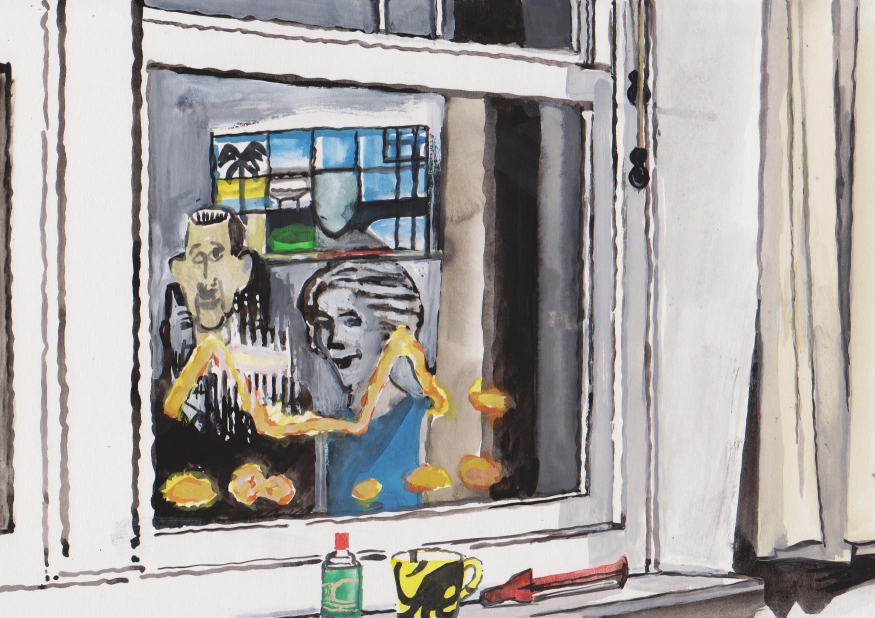 Sinds 1999 schilder ik elke dag, indien aanwezig, het uitzicht uit mijn atelierraam. Formaat (A4), techniek (gouache), tijd (17.00 uur), plaats in het atelier en kijkrichting liggen vast. Soms is ook de vensterbank te zien met de dingen die zich daar op hebben verzameld. OVER HET BOEK 'MIJN UITZICHT OM 17.00 UUR': ZIE 'Boeken' Every day, if present, I paint the view from my studio window. Size (A4), technique (watercolour), time (5 p.m.), position in the studio and the direction in which I look are fixed. Sometimes the windowsill can be seen with the different objects which have gathered there through time. ABOUT THE BOOK 'MY VIEW AT 5 P.M.' (WITH ENGLISH TEXT): SEE 'Books'