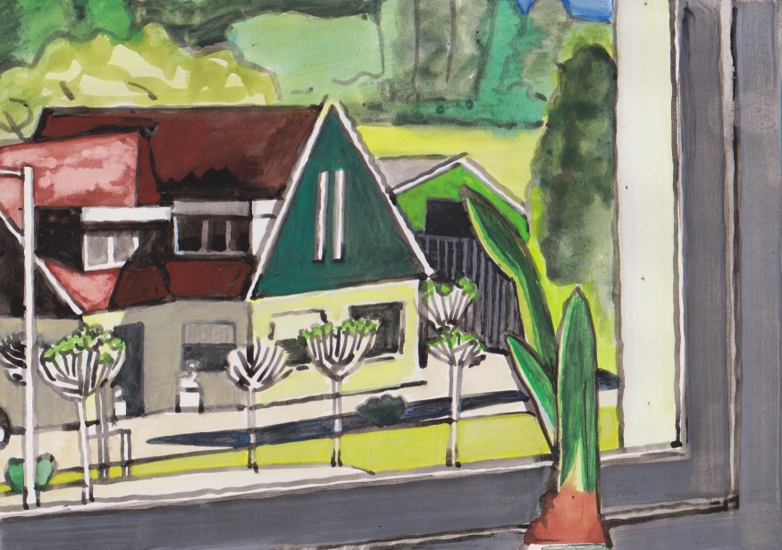 Sinds 1999 schilder ik elke dag, indien aanwezig, het uitzicht uit mijn atelierraam. Formaat (A4), techniek (gouache), tijd (17.00 uur), plaats in het atelier en kijkrichting liggen vast. Soms is ook de vensterbank te zien met de dingen die zich daar op hebben verzameld. OVER HET BOEK 'MIJN UITZICHT OM 17.00 UUR': ZIE 'Boeken' Every day, if present, I paint the view from my studio window. Size (A4), technique (watercolour), time (5 p.m.), position in the studio and the direction in which I look are fixed. Sometimes the windowsill can be seen with the different objects which have gathered there through time. ABOUT THE BOOK 'MY VIEW AT 5 P.M.' (WITH ENGLISH TEXT): SEE 'Books'