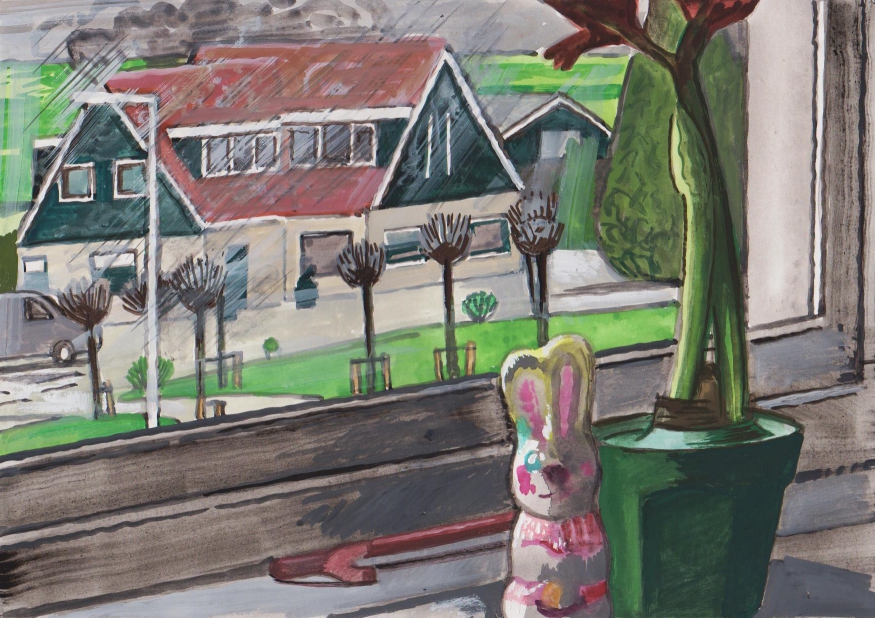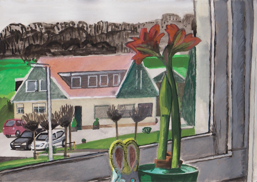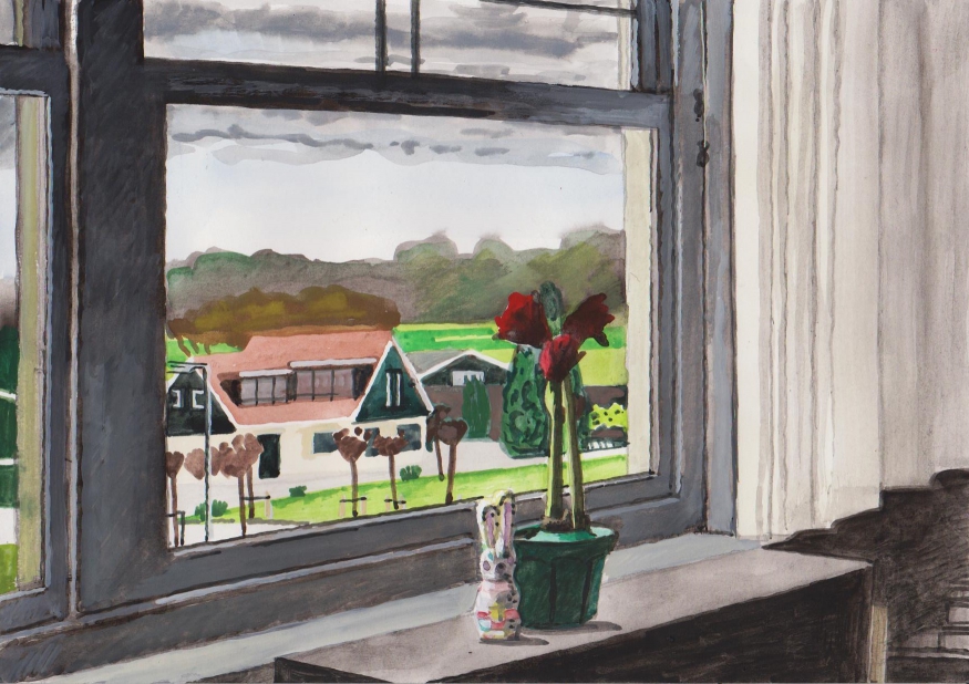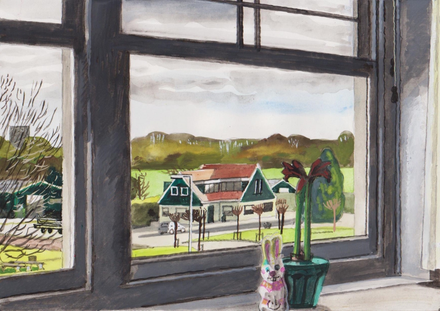 Sinds 1999 schilder ik elke dag, indien aanwezig, het uitzicht uit mijn atelierraam. Formaat (A4), techniek (gouache), tijd (17.00 uur), plaats in het atelier en kijkrichting liggen vast. Soms is ook de vensterbank te zien met de dingen die zich daar op hebben verzameld. OVER HET BOEK 'MIJN UITZICHT OM 17.00 UUR': ZIE 'Boeken' Every day, if present, I paint the view from my studio window. Size (A4), technique (watercolour), time (5 p.m.), position in the studio and the direction in which I look are fixed. Sometimes the windowsill can be seen with the different objects which have gathered there through time. ABOUT THE BOOK 'MY VIEW AT 5 P.M.' (WITH ENGLISH TEXT): SEE 'Books'