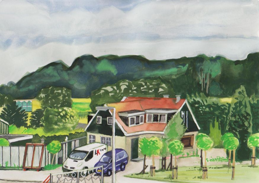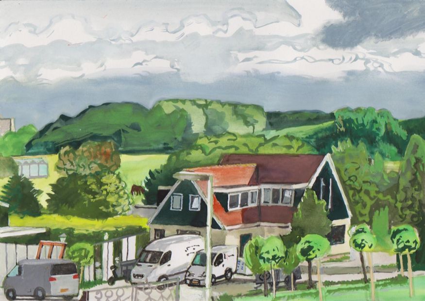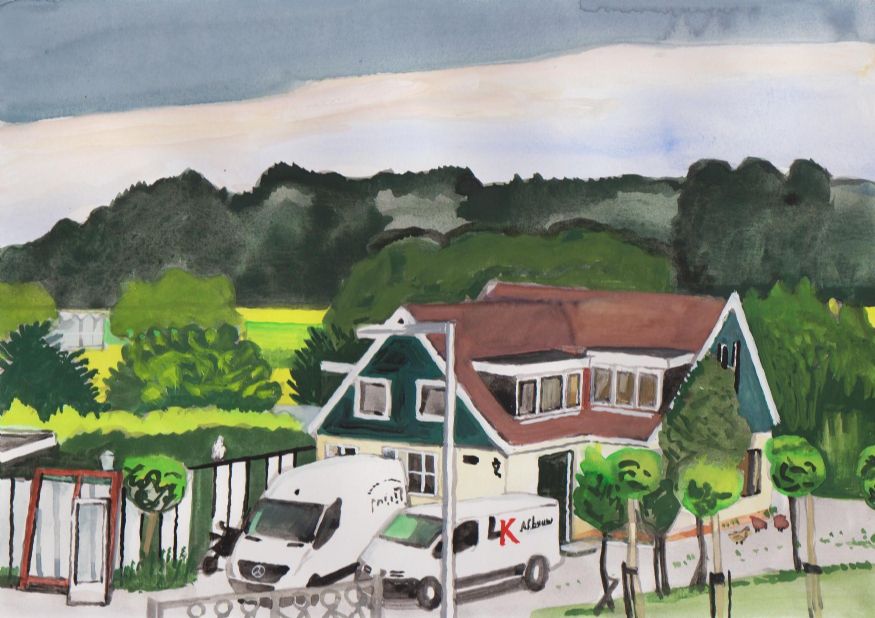 Sinds 1999 schilder ik elke dag, indien aanwezig, het uitzicht uit mijn atelierraam. Formaat (A4), techniek (gouache), tijd (17.00 uur), plaats in het atelier en kijkrichting liggen vast. Soms is ook de vensterbank te zien met de dingen die zich daar op hebben verzameld. OVER HET BOEK 'MIJN UITZICHT OM 17.00 UUR': ZIE 'Boeken' Every day, if present, I paint the view from my studio window. Size (A4), technique (watercolour), time (5 p.m.), position in the studio and the direction in which I look are fixed. Sometimes the windowsill can be seen with the different objects which have gathered there through time. ABOUT THE BOOK 'MY VIEW AT 5 P.M.' (WITH ENGLISH TEXT): SEE 'Books'