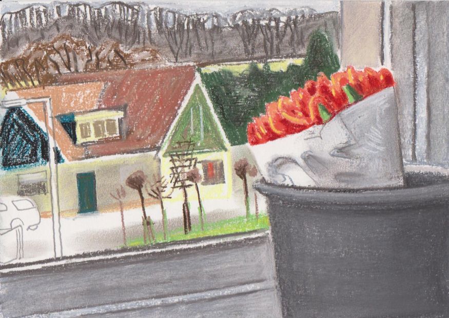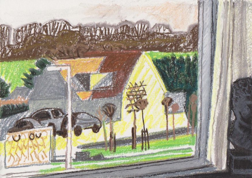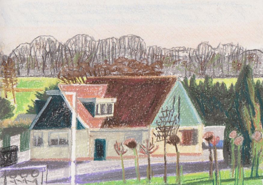 Sinds 1999 schilder ik elke dag, indien aanwezig, het uitzicht uit mijn atelierraam. Formaat (A4), techniek (gouache), tijd (17.00 uur), plaats in het atelier en kijkrichting liggen vast. Soms is ook de vensterbank te zien met de dingen die zich daar op hebben verzameld. OVER HET BOEK 'MIJN UITZICHT OM 17.00 UUR': ZIE 'Boeken' Every day, if present, I paint the view from my studio window. Size (A4), technique (watercolour), time (5 p.m.), position in the studio and the direction in which I look are fixed. Sometimes the windowsill can be seen with the different objects which have gathered there through time. ABOUT THE BOOK 'MY VIEW AT 5 P.M.' (WITH ENGLISH TEXT): SEE 'Books'