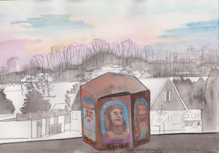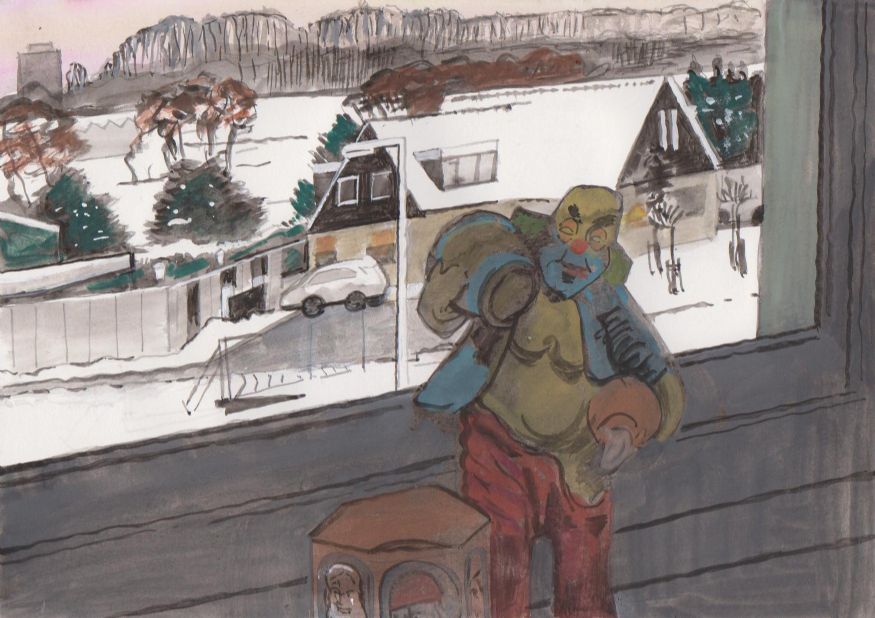 Sinds 1999 schilder ik elke dag, indien aanwezig, het uitzicht uit mijn atelierraam. Formaat (A4), techniek (gouache), tijd (17.00 uur), plaats in het atelier en kijkrichting liggen vast. Soms is ook de vensterbank te zien met de dingen die zich daar op hebben verzameld. OVER HET BOEK 'MIJN UITZICHT OM 17.00 UUR': ZIE 'Boeken' Every day, if present, I paint the view from my studio window. Size (A4), technique (watercolour), time (5 p.m.), position in the studio and the direction in which I look are fixed. Sometimes the windowsill can be seen with the different objects which have gathered there through time. ABOUT THE BOOK 'MY VIEW AT 5 P.M.' (WITH ENGLISH TEXT): SEE 'Books'