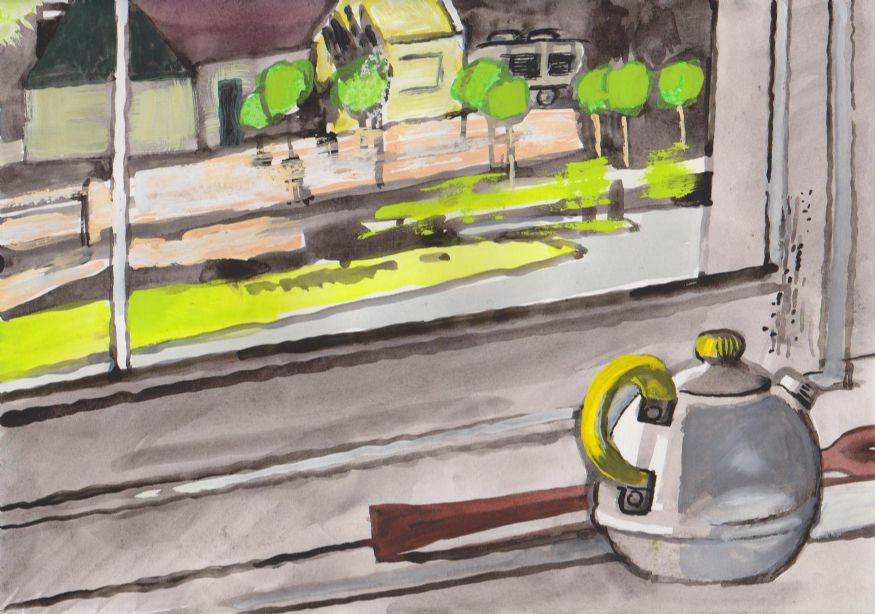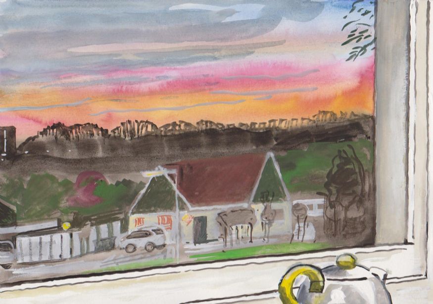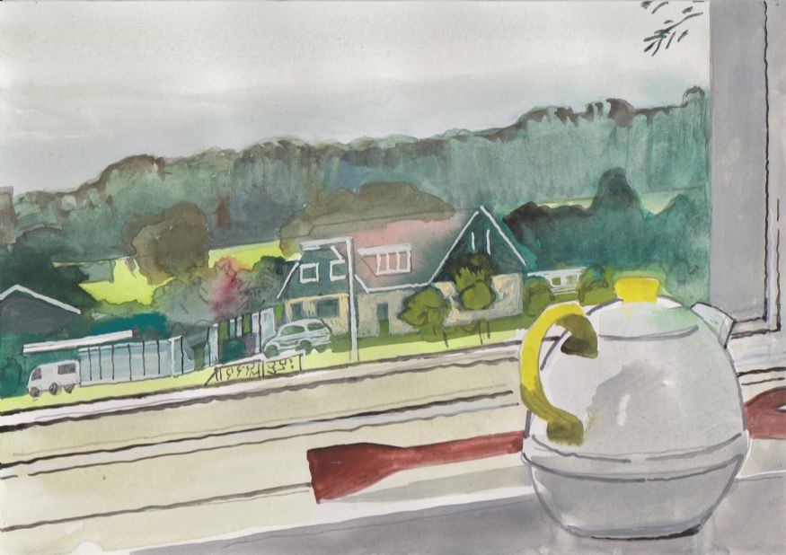 Sinds 1999 schilder ik elke dag, indien aanwezig, het uitzicht uit mijn atelierraam. Formaat (A4), techniek (gouache), tijd (17.00 uur), plaats in het atelier en kijkrichting liggen vast. Soms is ook de vensterbank te zien met de dingen die zich daar op hebben verzameld. OVER HET BOEK 'MIJN UITZICHT OM 17.00 UUR': ZIE 'Boeken' Every day, if present, I paint the view from my studio window. Size (A4), technique (watercolour), time (5 p.m.), position in the studio and the direction in which I look are fixed. Sometimes the windowsill can be seen with the different objects which have gathered there through time. ABOUT THE BOOK 'MY VIEW AT 5 P.M.' (WITH ENGLISH TEXT): SEE 'Books'