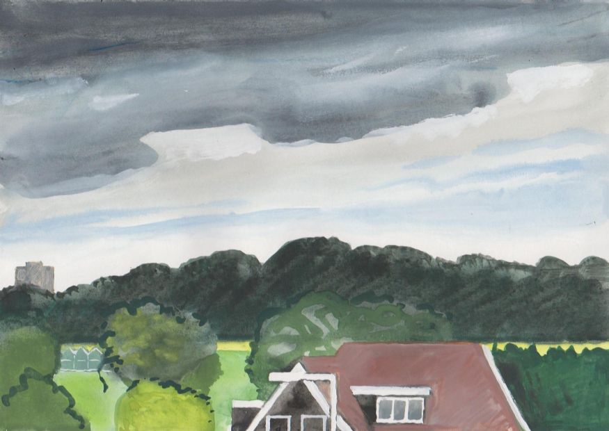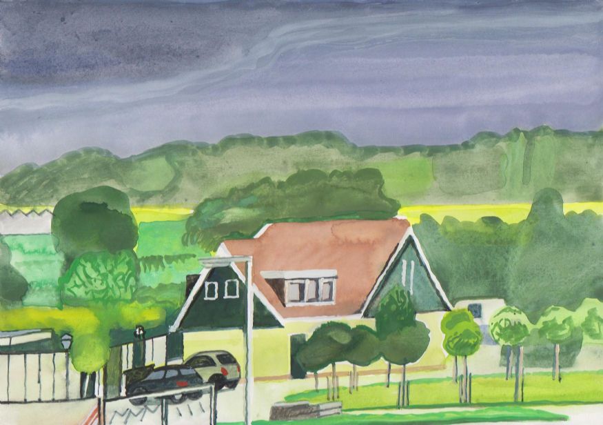 Sinds 1999 schilder ik elke dag, indien aanwezig, het uitzicht uit mijn atelierraam. Formaat (A4), techniek (gouache), tijd (17.00 uur), plaats in het atelier en kijkrichting liggen vast. Soms is ook de vensterbank te zien met de dingen die zich daar op hebben verzameld. OVER HET BOEK 'MIJN UITZICHT OM 17.00 UUR': ZIE 'Boeken' Every day, if present, I paint the view from my studio window. Size (A4), technique (watercolour), time (5 p.m.), position in the studio and the direction in which I look are fixed. Sometimes the windowsill can be seen with the different objects which have gathered there through time. ABOUT THE BOOK 'MY VIEW AT 5 P.M.' (WITH ENGLISH TEXT): SEE 'Books'