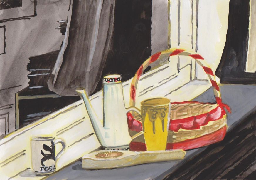 Sinds 1999 schilder ik elke dag, indien aanwezig, het uitzicht uit mijn atelierraam. Formaat (A4), techniek (gouache), tijd (17.00 uur), plaats in het atelier en kijkrichting liggen vast. Soms is ook de vensterbank te zien met de dingen die zich daar op hebben verzameld. OVER HET BOEK 'MIJN UITZICHT OM 17.00 UUR': ZIE 'Boeken' Every day, if present, I paint the view from my studio window. Size (A4), technique (watercolour), time (5 p.m.), position in the studio and the direction in which I look are fixed. Sometimes the windowsill can be seen with the different objects which have gathered there through time. ABOUT THE BOOK 'MY VIEW AT 5 P.M.' (WITH ENGLISH TEXT): SEE 'Books'