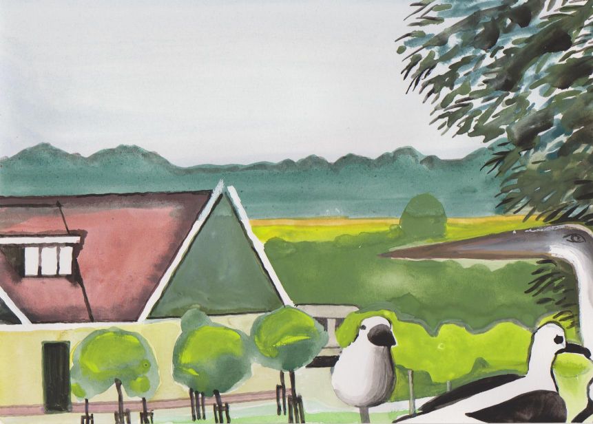Sinds 1999 schilder ik elke dag, indien aanwezig, het uitzicht uit mijn atelierraam. Formaat (A4), techniek (gouache), tijd (17.00 uur), plaats in het atelier en kijkrichting liggen vast. Soms is ook de vensterbank te zien met de dingen die zich daar op hebben verzameld. OVER HET BOEK 'MIJN UITZICHT OM 17.00 UUR': ZIE 'Boeken' Every day, if present, I paint the view from my studio window. Size (A4), technique (watercolour), time (5 p.m.), position in the studio and the direction in which I look are fixed. Sometimes the windowsill can be seen with the different objects which have gathered there through time. ABOUT THE BOOK 'MY VIEW AT 5 P.M.' (WITH ENGLISH TEXT): SEE 'Books'