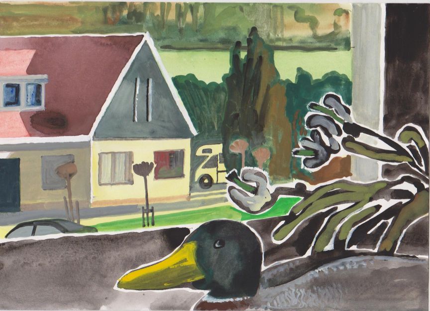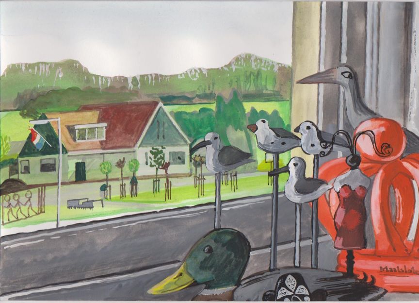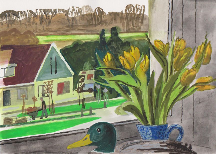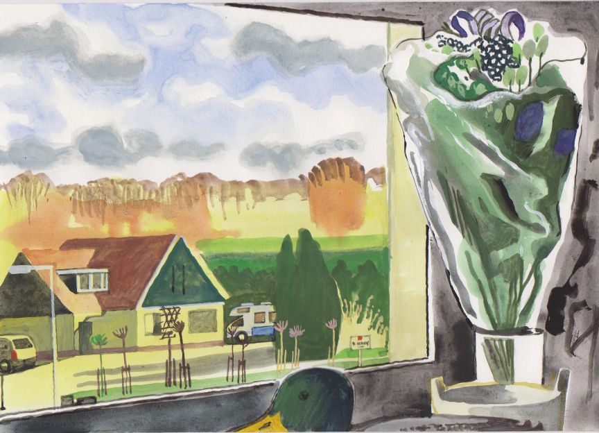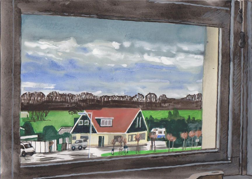 Sinds 1999 schilder ik elke dag, indien aanwezig, het uitzicht uit mijn atelierraam. Formaat (A4), techniek (gouache), tijd (17.00 uur), plaats in het atelier en kijkrichting liggen vast. Soms is ook de vensterbank te zien met de dingen die zich daar op hebben verzameld. OVER HET BOEK 'MIJN UITZICHT OM 17.00 UUR': ZIE 'Boeken' Every day, if present, I paint the view from my studio window. Size (A4), technique (watercolour), time (5 p.m.), position in the studio and the direction in which I look are fixed. Sometimes the windowsill can be seen with the different objects which have gathered there through time. ABOUT THE BOOK 'MY VIEW AT 5 P.M.' (WITH ENGLISH TEXT): SEE 'Books'