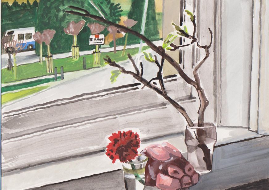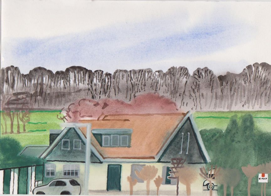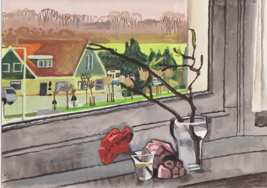 Sinds 1999 schilder ik elke dag, indien aanwezig, het uitzicht uit mijn atelierraam. Formaat (A4), techniek (gouache), tijd (17.00 uur), plaats in het atelier en kijkrichting liggen vast. Soms is ook de vensterbank te zien met de dingen die zich daar op hebben verzameld. OVER HET BOEK 'MIJN UITZICHT OM 17.00 UUR': ZIE 'Boeken' Every day, if present, I paint the view from my studio window. Size (A4), technique (watercolour), time (5 p.m.), position in the studio and the direction in which I look are fixed. Sometimes the windowsill can be seen with the different objects which have gathered there through time. ABOUT THE BOOK 'MY VIEW AT 5 P.M.' (WITH ENGLISH TEXT): SEE 'Books'