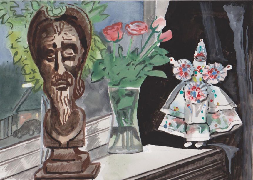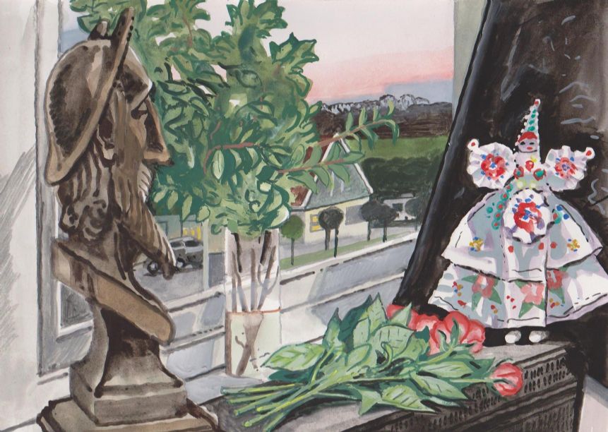 Sinds 1999 schilder ik elke dag, indien aanwezig, het uitzicht uit mijn atelierraam. Formaat (A4), techniek (gouache), tijd (17.00 uur), plaats in het atelier en kijkrichting liggen vast. Soms is ook de vensterbank te zien met de dingen die zich daar op hebben verzameld. OVER HET BOEK 'MIJN UITZICHT OM 17.00 UUR': ZIE 'Boeken' Every day, if present, I paint the view from my studio window. Size (A4), technique (watercolour), time (5 p.m.), position in the studio and the direction in which I look are fixed. Sometimes the windowsill can be seen with the different objects which have gathered there through time. ABOUT THE BOOK 'MY VIEW AT 5 P.M.' (WITH ENGLISH TEXT): SEE 'Books'