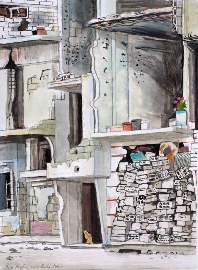 Baba Amr, Homs (gouache, 43 x 31 cm.)
